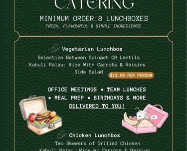 For over 20 years, we serve healthy, home-cooked Afghan meals made from family recipes, ensuring quality and flavor with every dish.